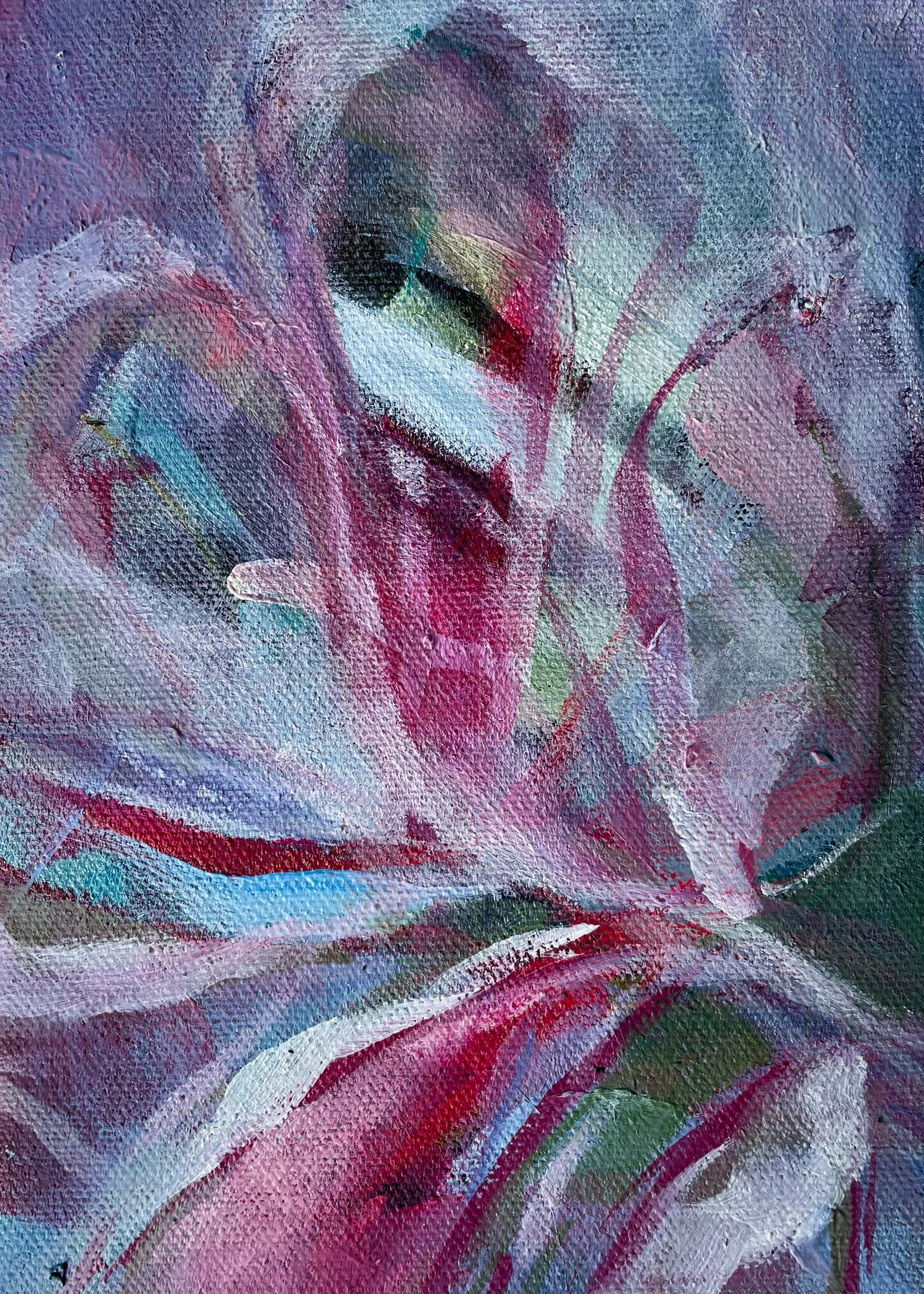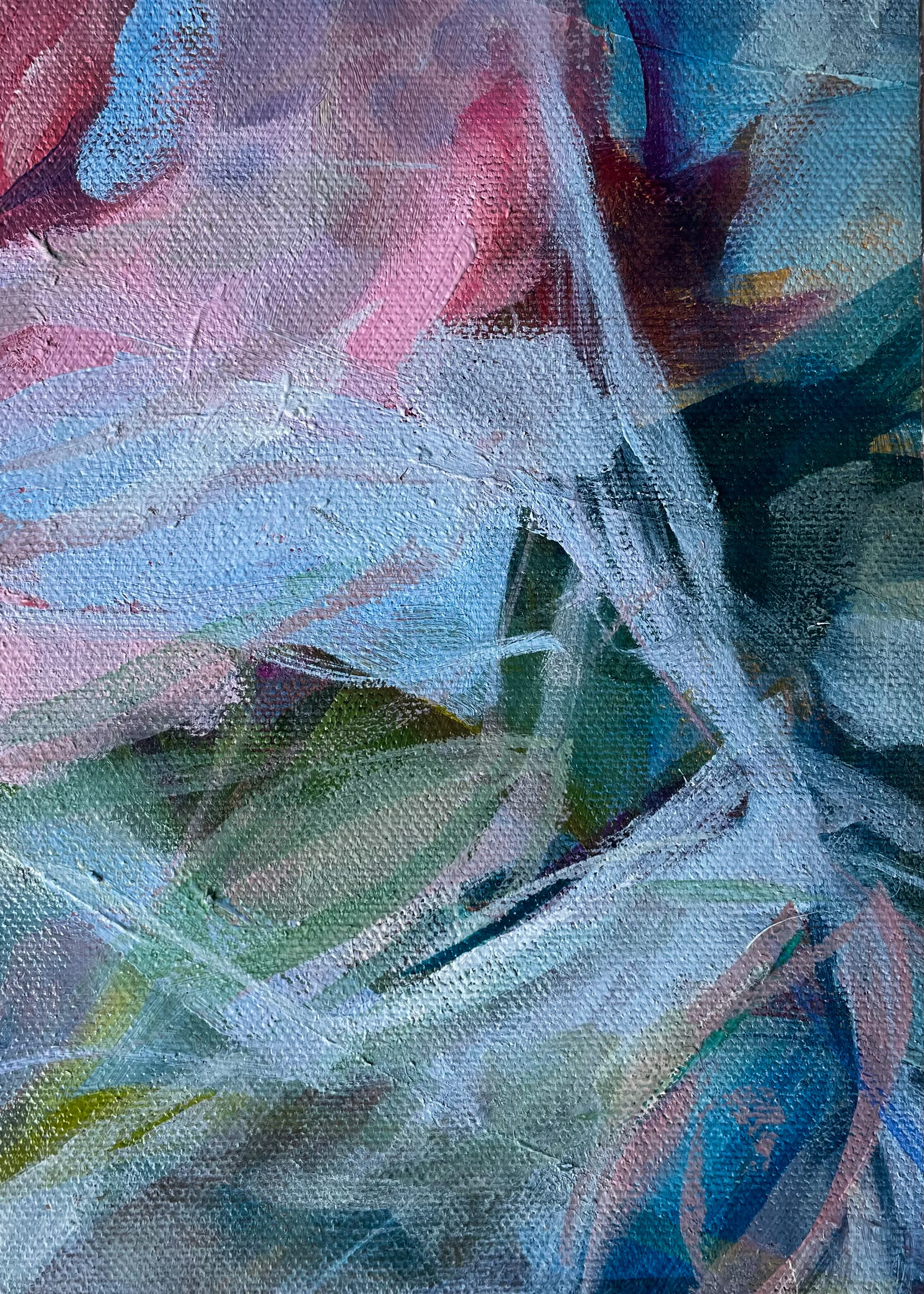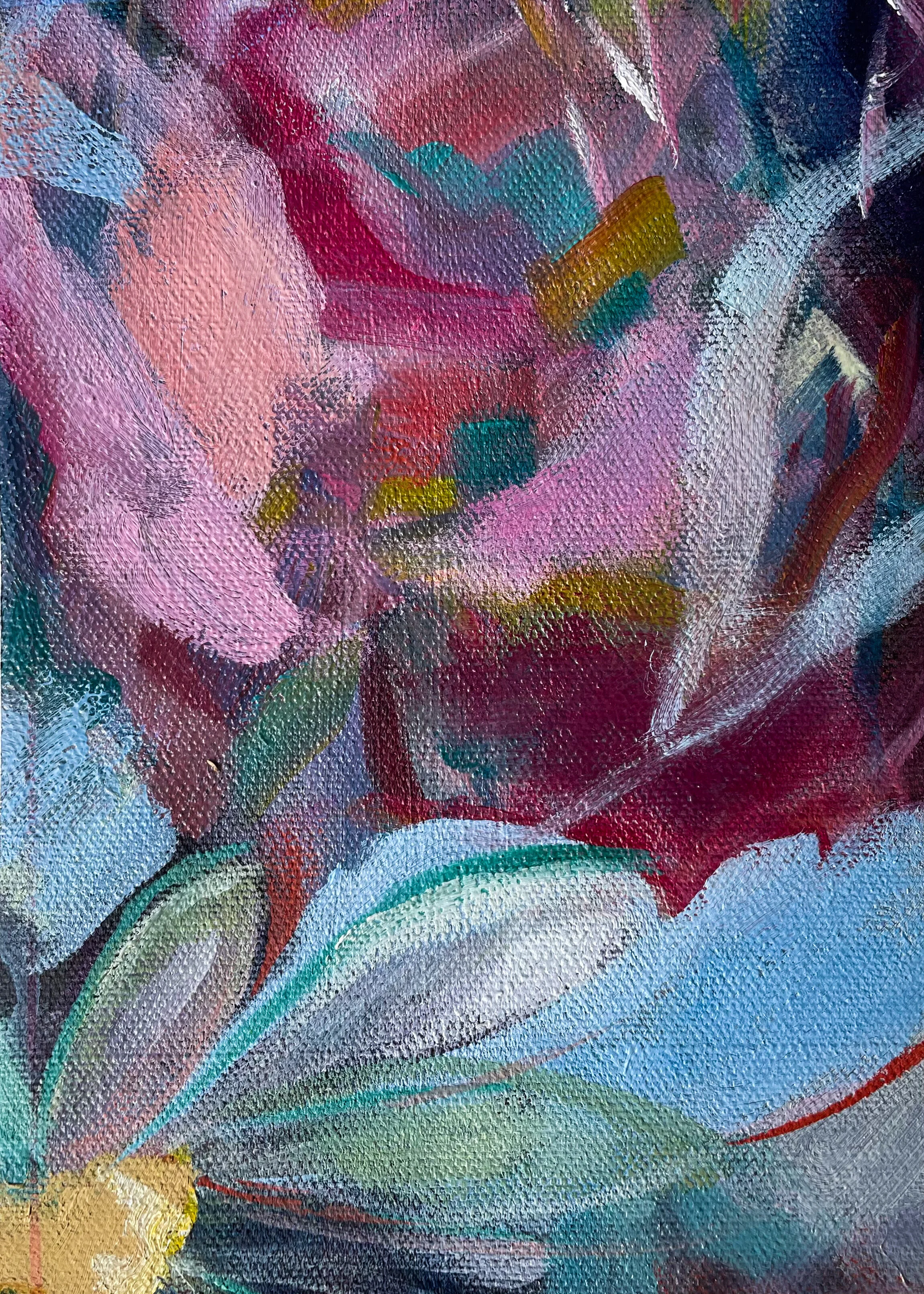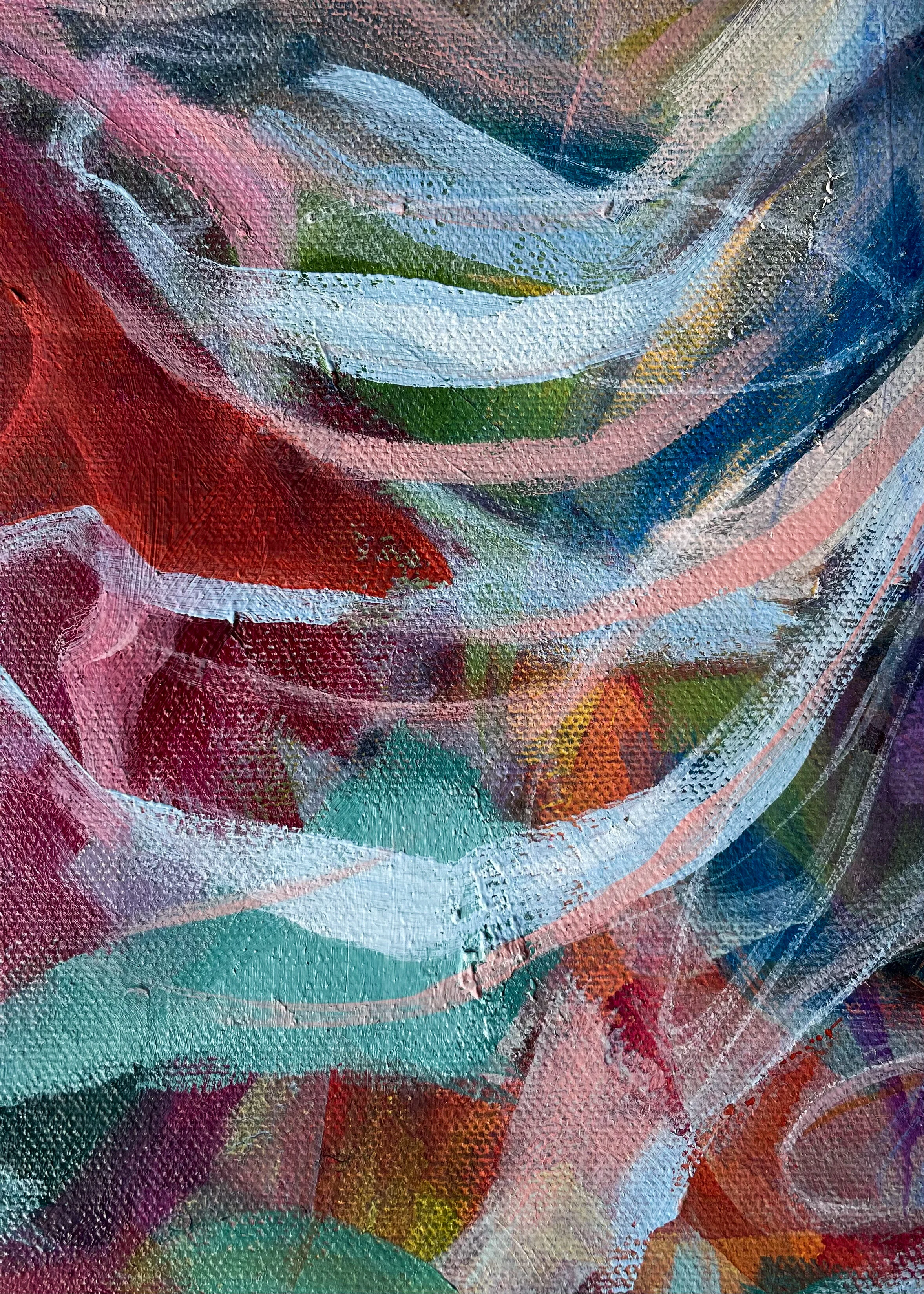 At the beginning of summer 2020, I was working on a large floral abstract commission for my beautiful mom. She wanted vivid color, white daisies (her favorite flower), jewel tones, and bold brush strokes. Before I finished it, my mom tragically died. After staring for weeks at the work in progress, which she painfully never saw, I decided to cut it into dozens of pieces. My desire was to throw composition to the wind and allow myself to let go of the original plan for that piece in an effort to look at it with hope. This was painful. In a beautiful gift from God, this project soon became cathartic. I worked on each small painting, addressing it as its own work. On the back of every canvas, I wrote a memory, story, or something I love about my mom. This collection is in celebration of her, and the fact that beauty can absolutely be drawn from brokenness.
